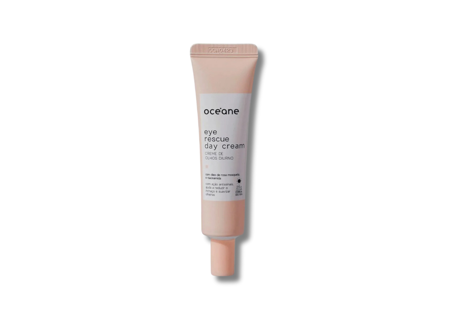 Eye Rescue Day Cream combina niacinamida, vitamina C, peptídeos, ácido hialurônico, ureia e probióticos.
