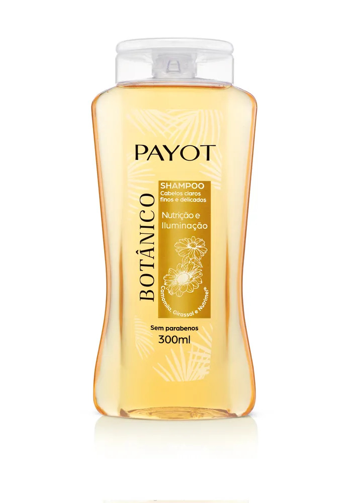 O shampoo camomila, girassol e nutrimel de payot trata com eficiência, conferindo hidratação, brilho e reparação dos fios. limpa suavemente, proporcionando leveza, luminosidade e vitalidade aos cabelos.